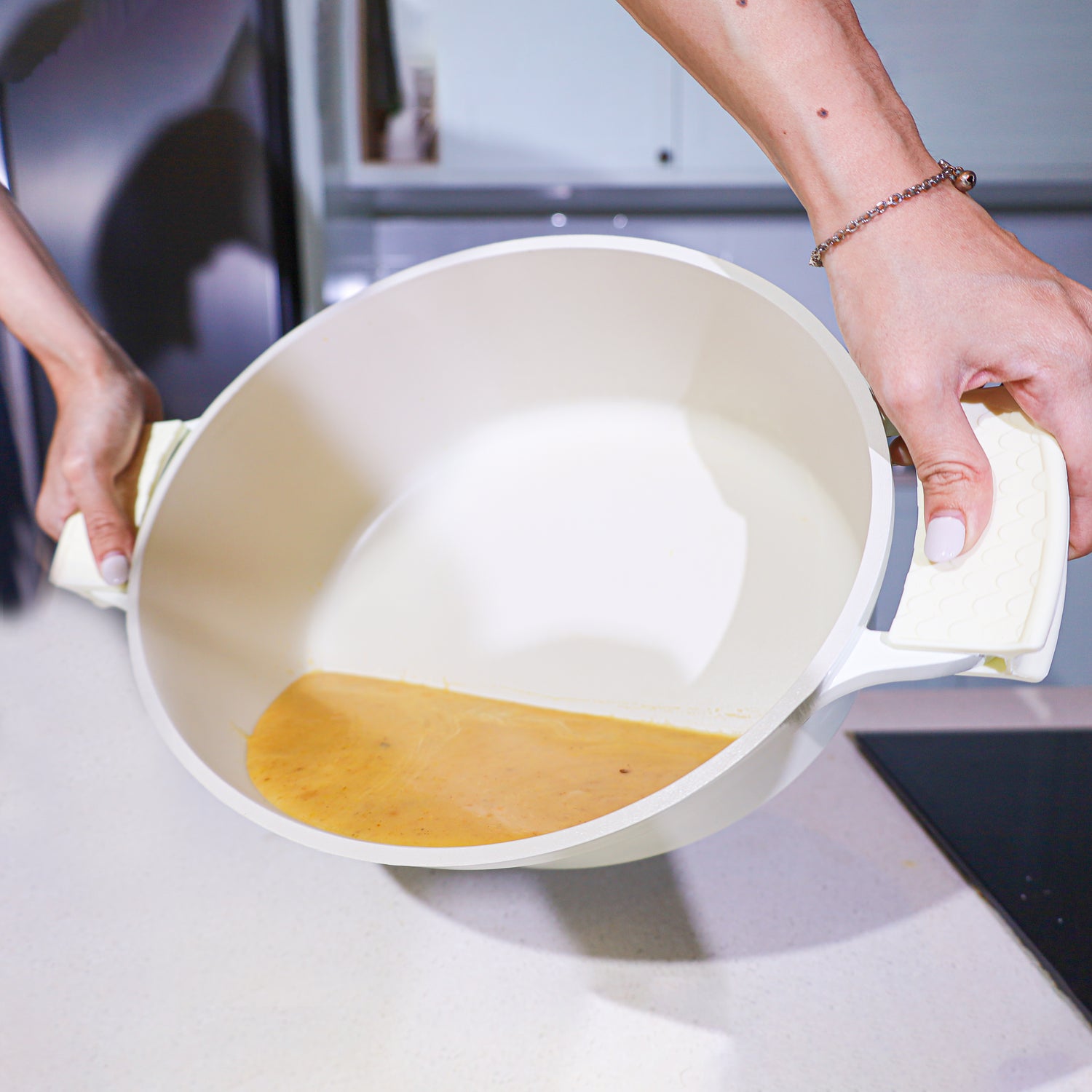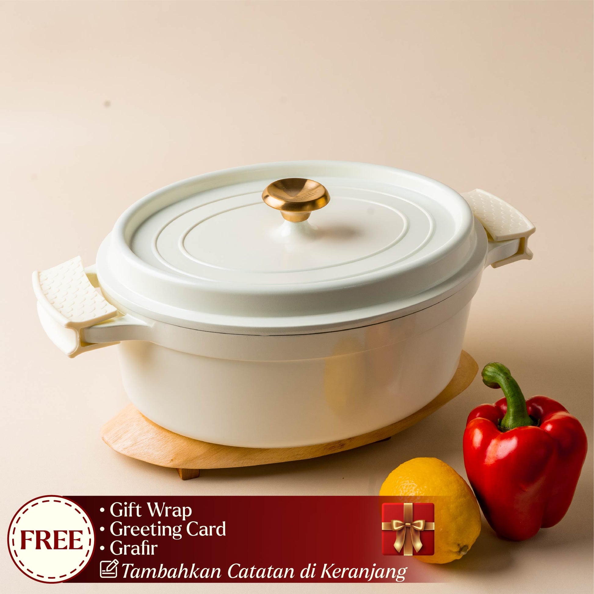 Desain Elegan dan Ergonomis: Panci ini memiliki desain yang cantik dengan warna ivory yang elegan membuat Artisan Dutch Oven II juga sangat cocok untuk disajikan langsung diatas meja makan. dilengkapi juga dengan handle removable yang nyaman digenggam dan tahan panas, juga pastinya akan menambah estetika dapur Anda.