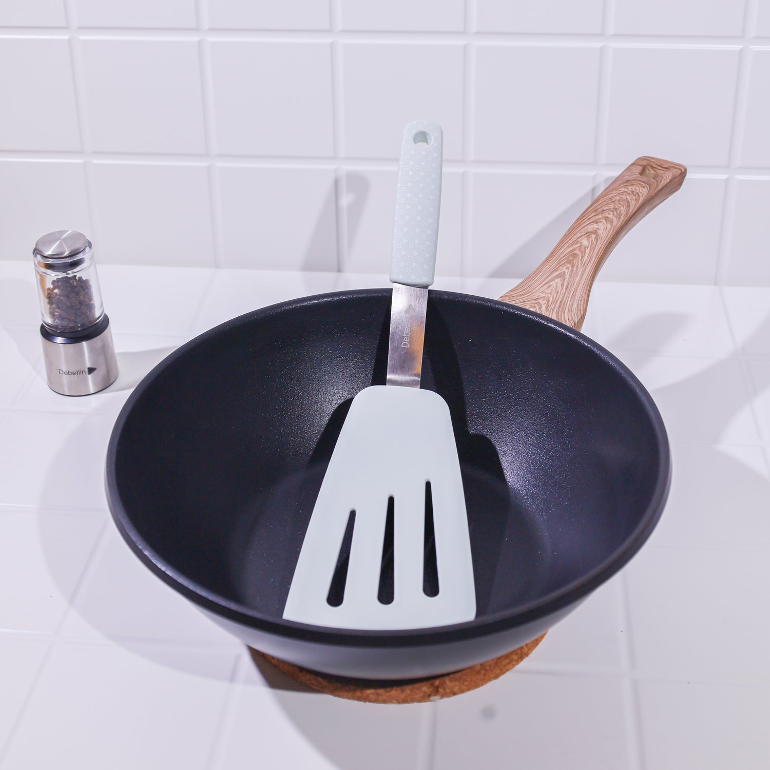 Gagang Spatula Debellin Big Spatula Series terbuat dari bahan stainless steel yang anti karat, dengan perawatan yang baik dan benar spatula ini akan awet dan tidak berkarat.