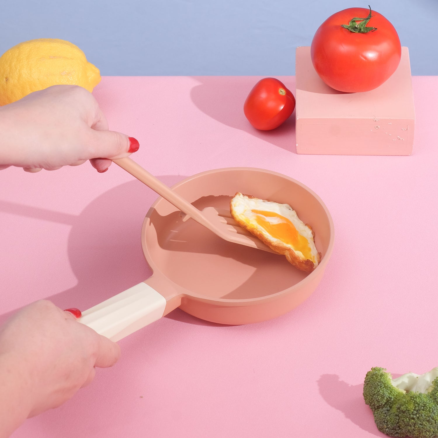 Desain Lucu dan Ergonomis: Fry pan ini memiliki tampilan yang lucu dengan warna cerah dan handle berbentuk kaktus yang disukai anak-anak. Dengan handle anti panas dan nyaman digenggam pastinya akan membuat si kecil aman dan juga semangat untuk mencoba memasak.