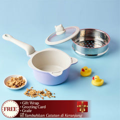 • Sauce Pan 16 cm dengan tutup kaca + 1 pcs steamer