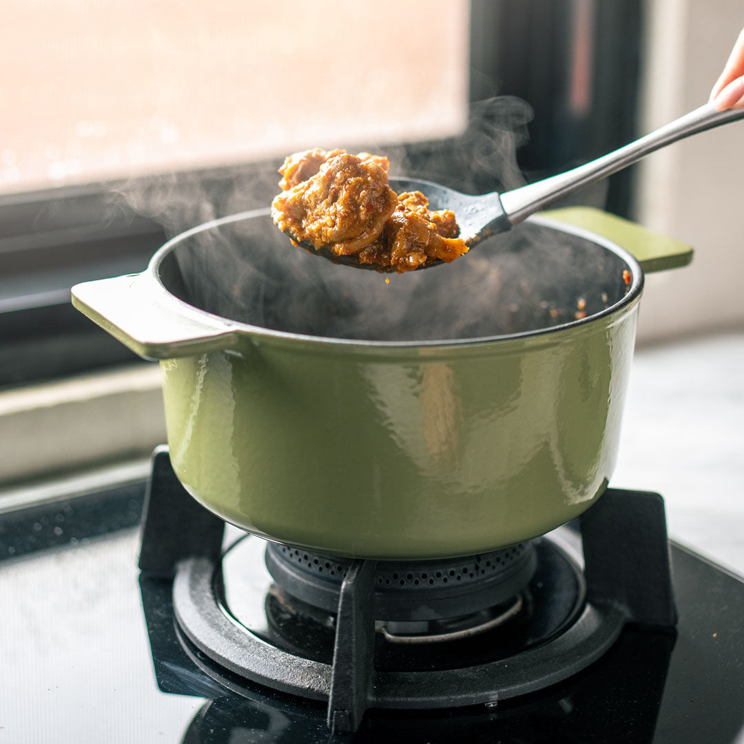 Kuat dan Tahan Lama: Ciri khas alat masak cast iron adalah sifatnya yang berat, tahan lama, dan bisa bertahan bertahun-tahun, bahkan diwariskan antar generasi jika dirawat dengan baik.