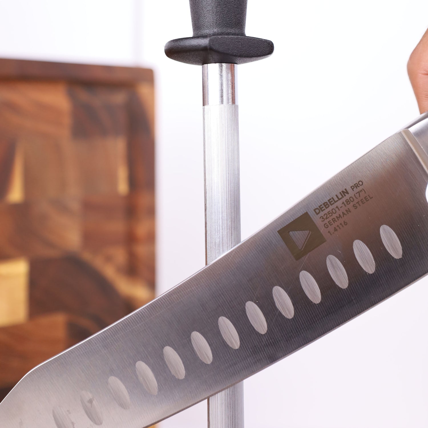 *1 pcs Debellin Messer Pro Knife Sharpener TIDAK TERMASUK dengan Chopping Board (Talenan). Khusus talenan dijual terpisah.