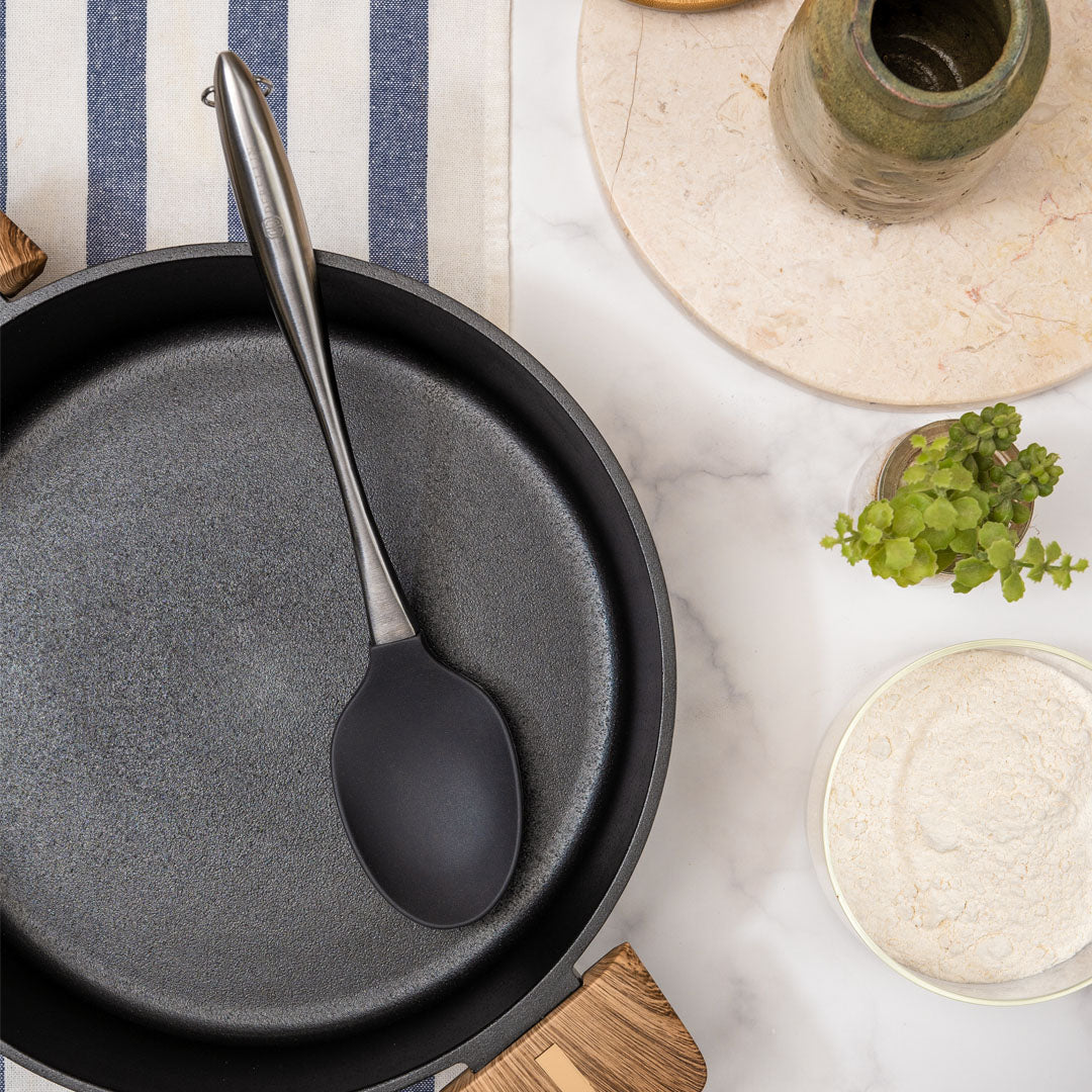 Pastikan untuk memeriksa batas suhu tahan panas spatula silikon Anda. Untuk silikon series ini tahan panas hingga 250°C.