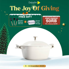 Debellin x YDC Down To Earth Set adalah serangkaian alat masak dari kolaborasi antara Debellin dan influencer YDC (Yenny Di China), yang membawa filosofi Cook With Ease, Live With Grace. Dirancang untuk memberi kemudahan dan kenyamanan dalam memasak, produk ini hadir dengan lapisan antilengket Greblon C3 yang sangat efektif, sehingga Anda bisa memasak dengan lebih mudah dan hasil masakan selalu sempurna tanpa makanan menempel.